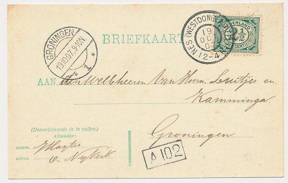 Oosternijkerk - Grootrondstempel Nes (Westdongeradeel ) 1907
