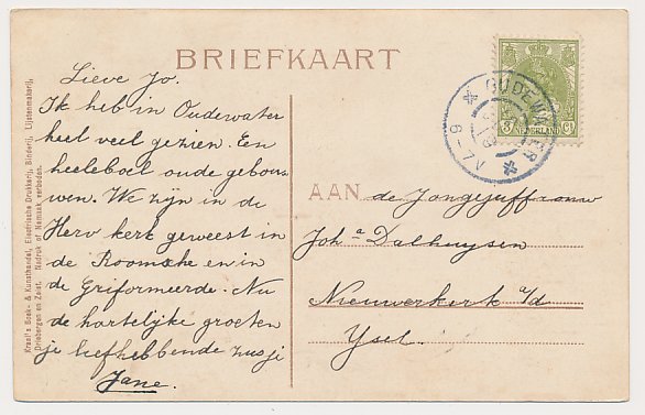 Grootrondstempel Oudewater - Nieuwerkerk a/d IJssel 1919