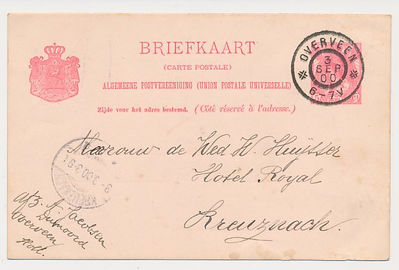 Grootrondstempel Overveen - Kreuznach Duitsland 1900