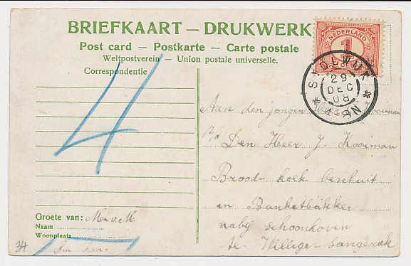 Grootrondstempel Sommelsdijk - Bussum 1909