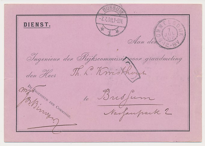 Grootrondstempel Sommelsdijk - Bussum 1908