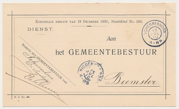 Grootrondstempel Schermerhorn - Beemster 1910