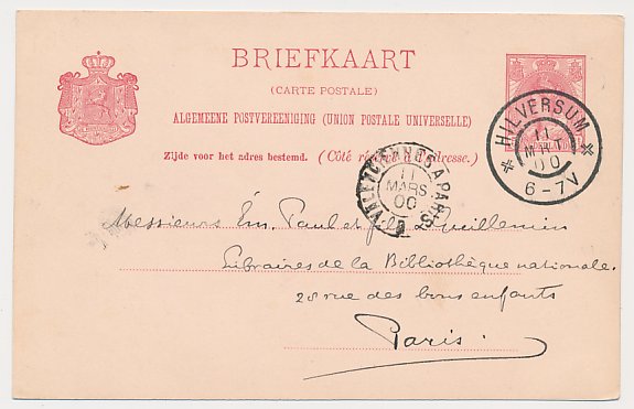 Grootrondstempel Hilversum - Parijs Frankrijk 1900