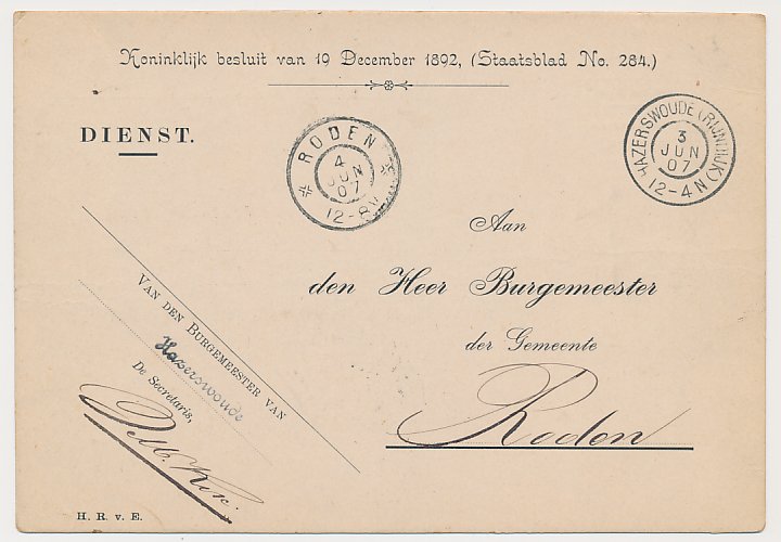 Grootrondstempel Hazerswoude (Rijndijk ) - Roden 1907