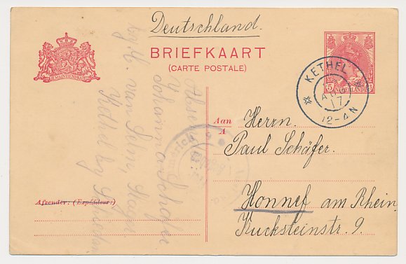 Grootrondstempel Kethel - Honnef am Rhein Duitsland 1917