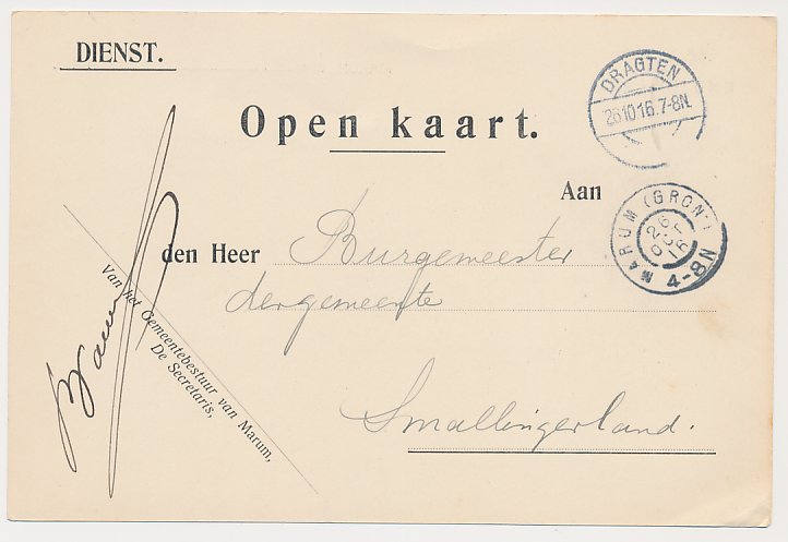 Grootrondstempel Marum (Gron:) - Dragten 1916