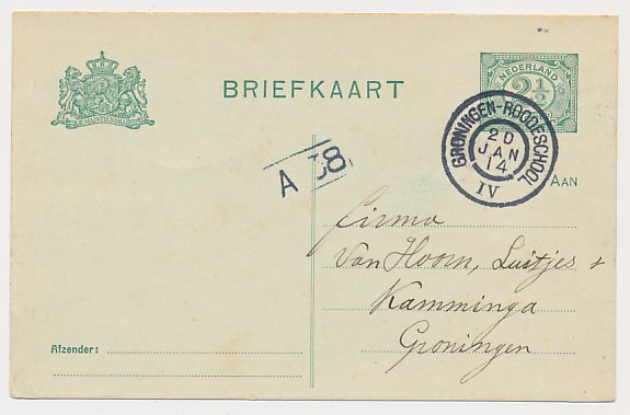 Grootrondstempel traject: Groningen - Roodeschool IV 1914