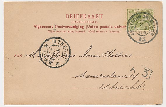 Grootrondstempel traject: Amsterdam - Antwerpen IX 1904