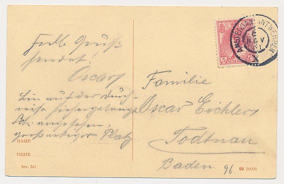 Grootrondstempel traject: Amsterdam - Antwerpen J 1908