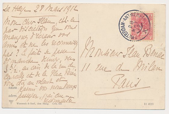 Grootrondstempel traject: Amsterdam - Antwerpen X 1914