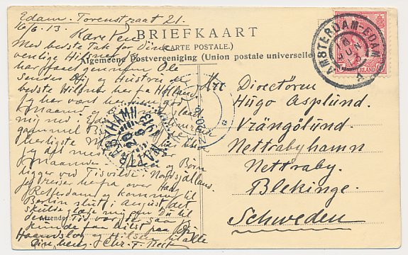 Grootrondstempel traject: Amsterdam - Edam A 1913