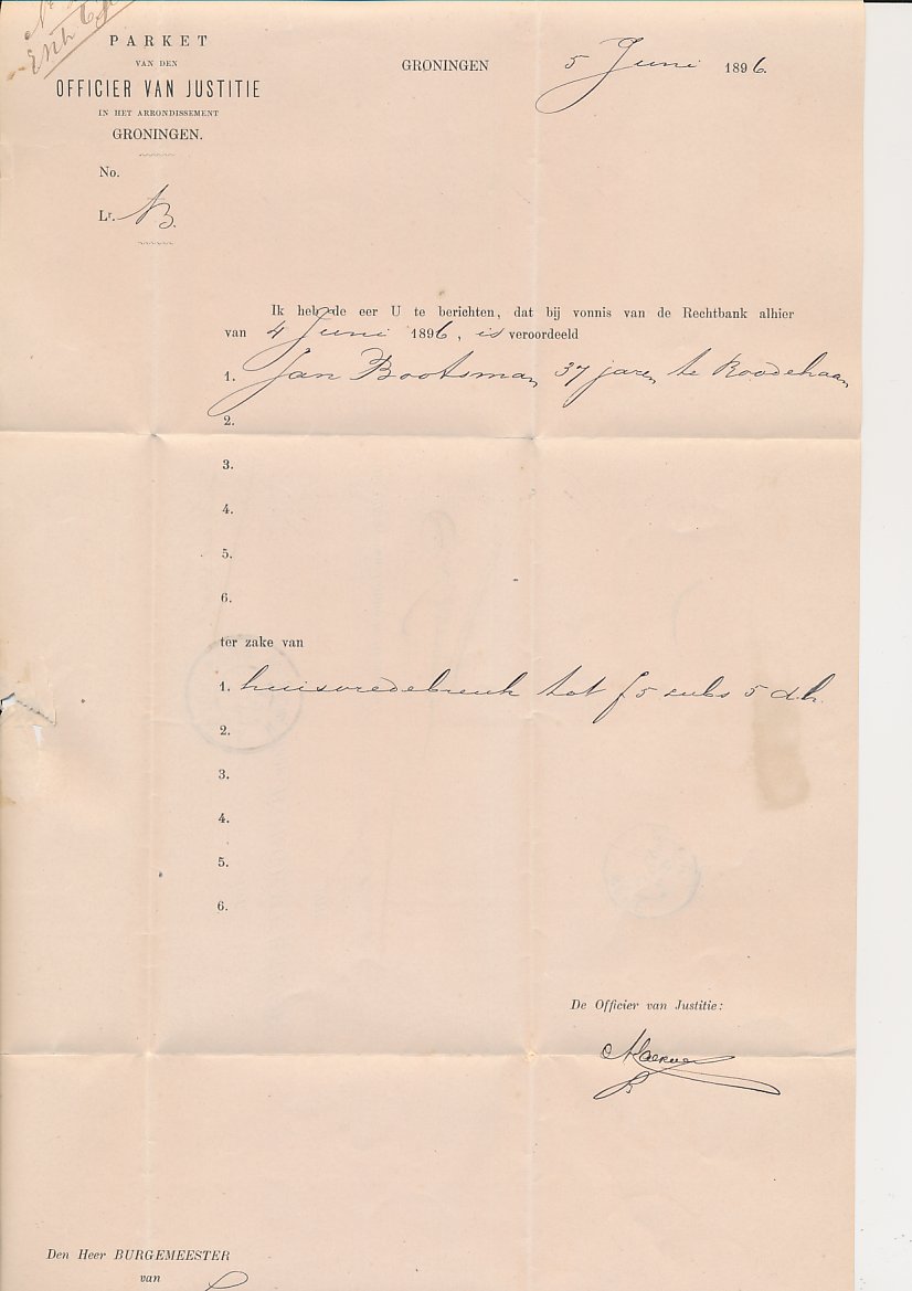 Grootrondstempel Groningen - Leens 1901 - Rechtbank Vonnis