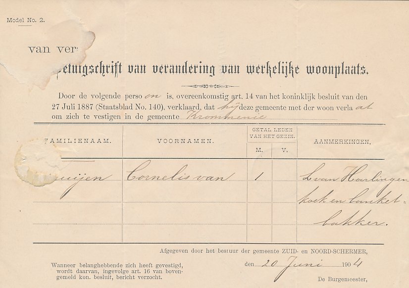 Dienst Groot-Schermer 20.6.1904