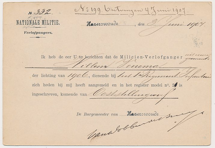 Dienst Hazerswoude 3.6.1907