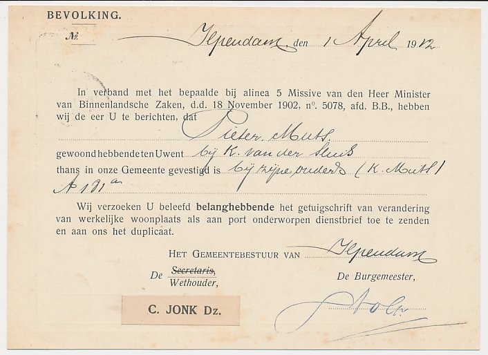 Grootrondstempel Ilpendam - Monikkendam 1912