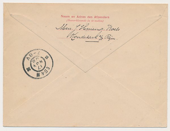 Grootrondstempel Koudekerk (Z:H:) - Edam 1908