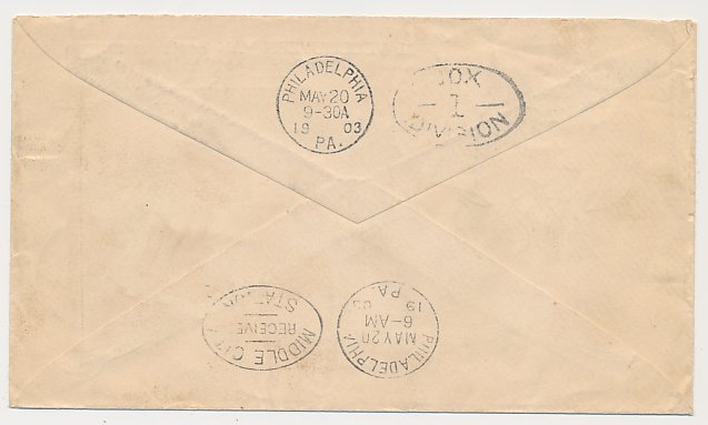 Grootrondstempel Lisse - Philadelphia USA 1903