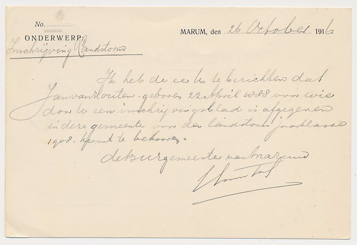 Grootrondstempel Marum (Gron:) - Dragten 1916