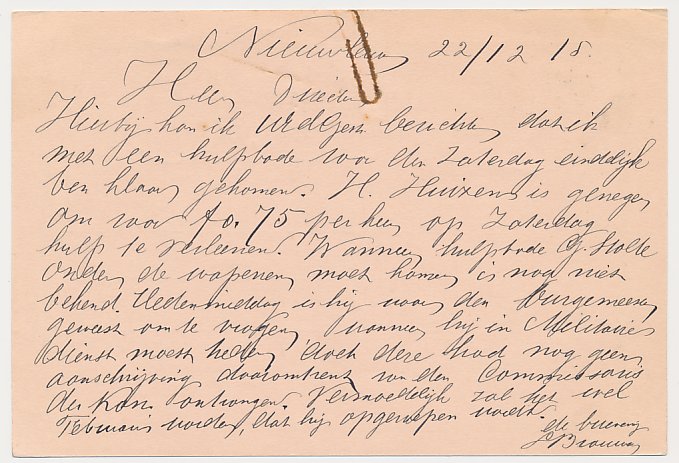 Dienst Posterijen Nieuwleusen 22.12.1915