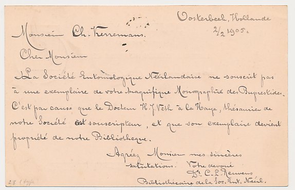 Grootrondstempel Oosterbeek - Brussel Belgie 1905