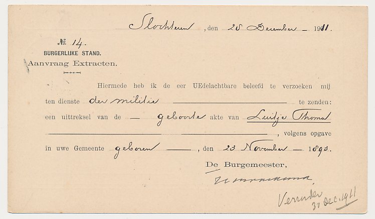 Dienst Slochteren 29.12.1911