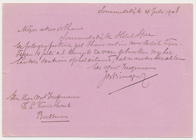 Grootrondstempel Sommelsdijk - Bussum 1908