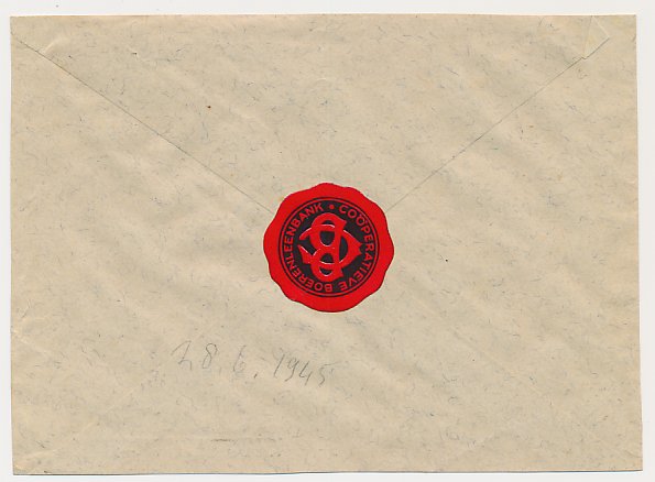 Aangetekend Ouddorp 1945 - Overstempeld strookje Nieuwe Tonge