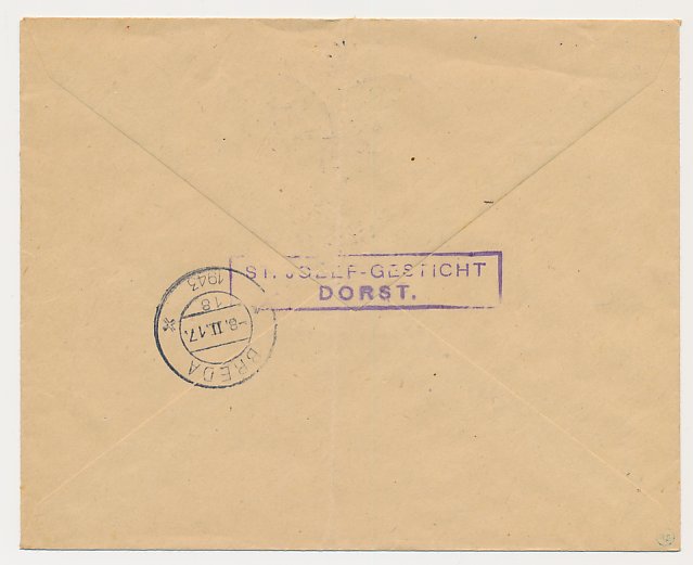 Aangetekend Dorst 1943 - Overstempeld strookje Breda