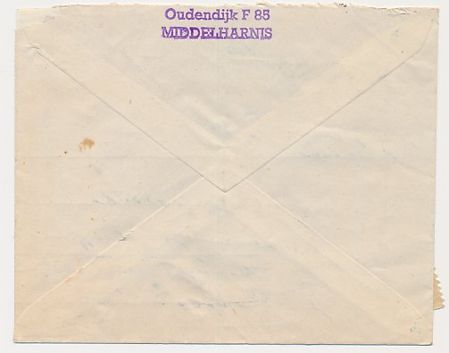 Aangetekend Middelharnis 1944 - Overstempeld strookje Oude Tonge