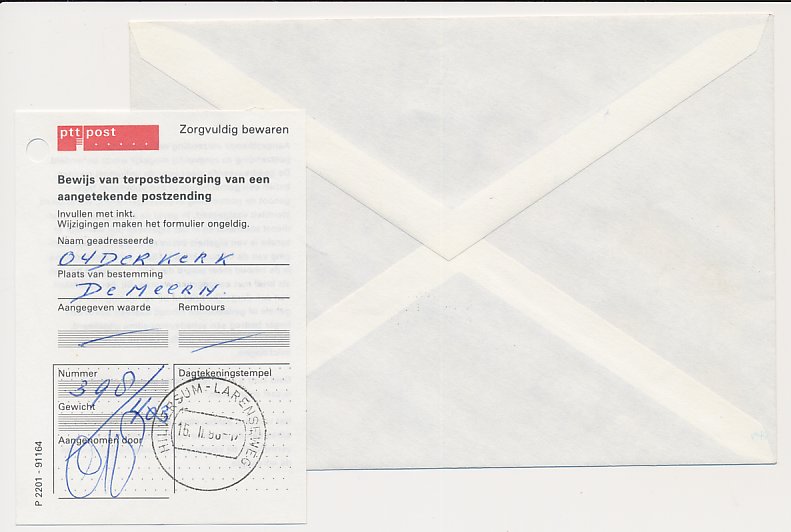 Aangetekend Hilversum Larenseweg 1990 - Overstempeld strookje