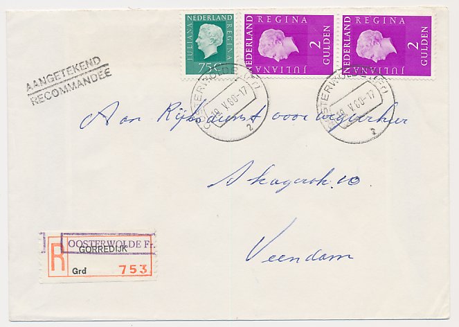 Aangetekend Zuidbroek 1969 - Overstempeld strookje Hoogezand