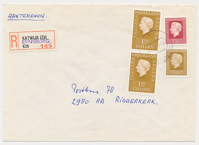 Aangetekend Rijnsburg 1979 - Overstempeld strookje Katwijk