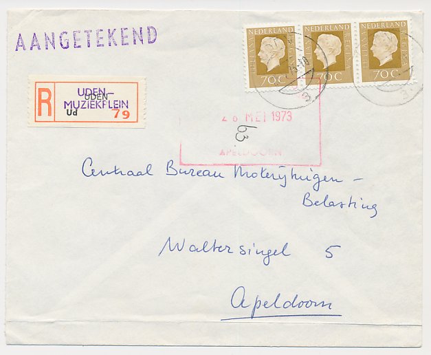 Aangetekend Uden Muziekplein 1973 - Overstempeld strookje