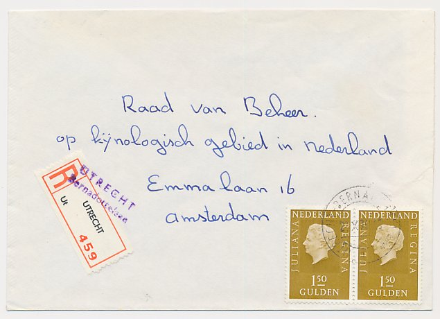 Aangetekend Utrecht Boerhaavelaan 1971 - Overstempeld strookje