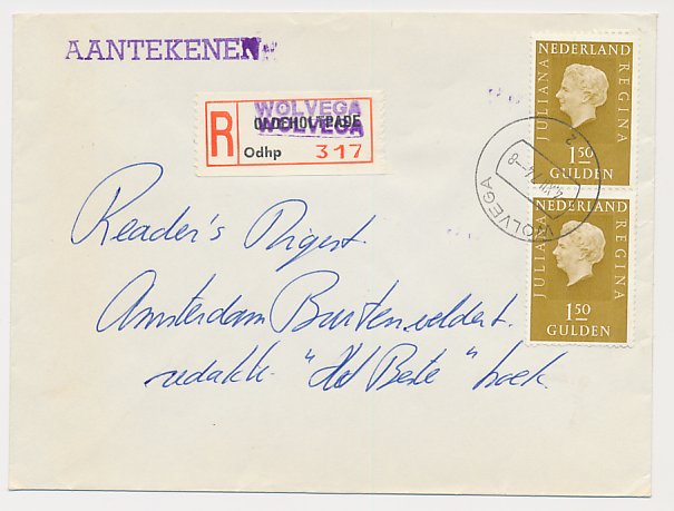 Aangetekend Wolvega 1974 - Overstempeld strookje Oldeholtpade