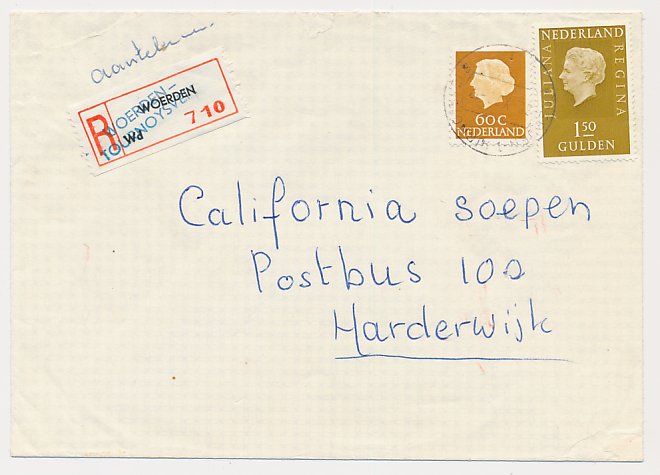 Aangetekend Woerden Tournoysveld 1972 - Overstempeld strookje