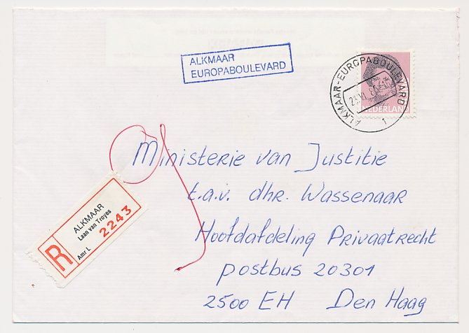 Aangetekend Alkmaar Europaboulevard 1985 - Kantoor bijgestempeld