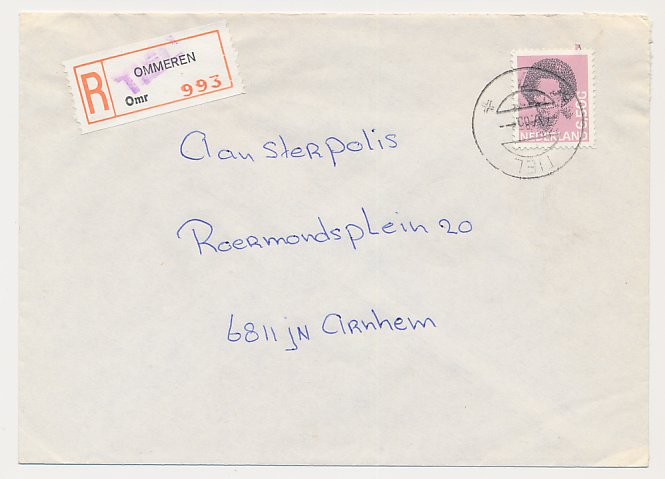 Aangetekend Tiel 1985 - Overstempeld strookje Ommeren