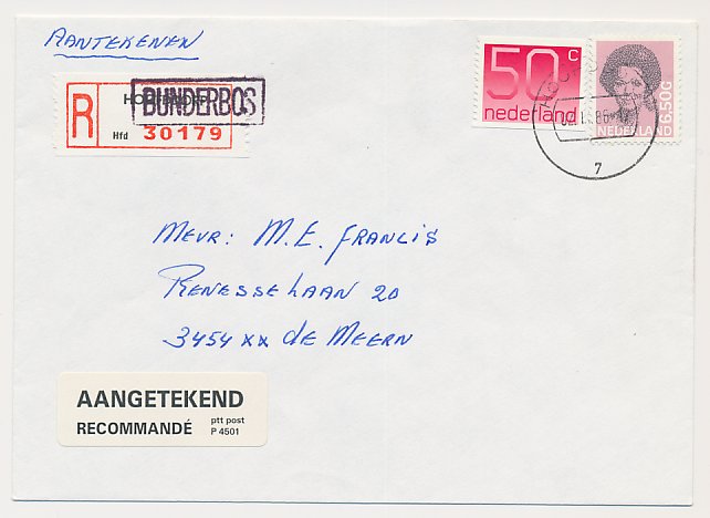 Aangetekend Hoofddorp Bunderbos 1986 - Overstempeld strookje