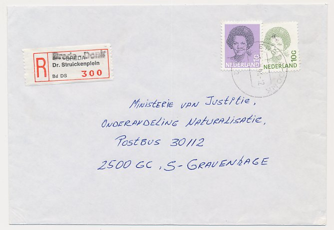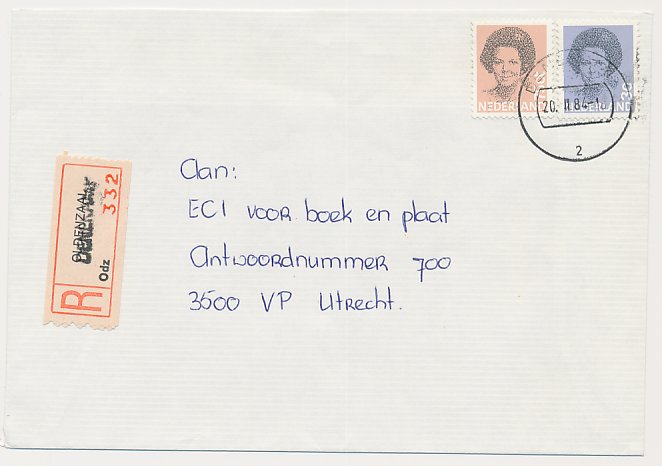 Aangetekend Zoetermeer V. Aalstlaan 1987- Overstempeld strookje