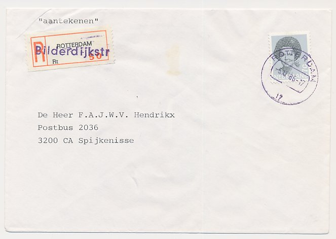 Aangetekend Rotterdam Bilderdijk 1986 - Overstempeld strookje