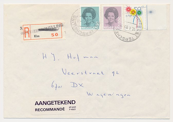 Aangetekend Terschelling 1989 - Overstempeld strookje Kimswerd