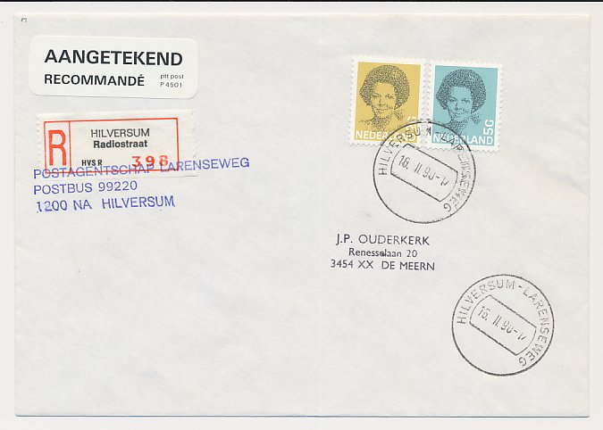 Aangetekend Hilversum Larenseweg 1990 - Overstempeld strookje