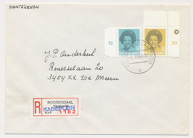Aangetekend Roosendaal Kadeplein 1988 - Overstempeld strookje