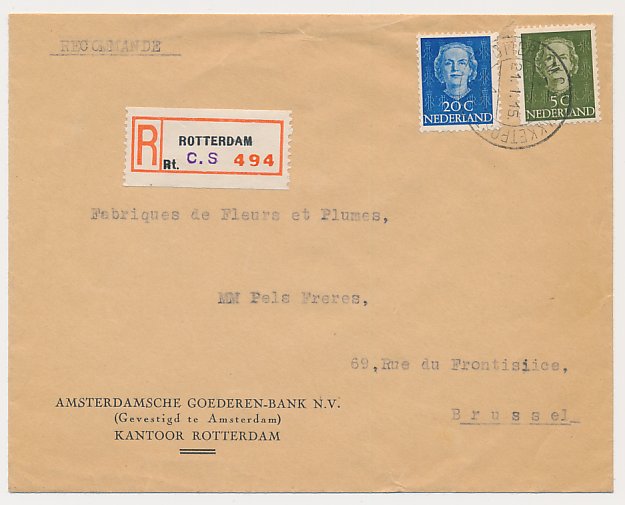 Aangetekend Rotterdam C.S 1950- Bijgestempeld strookje