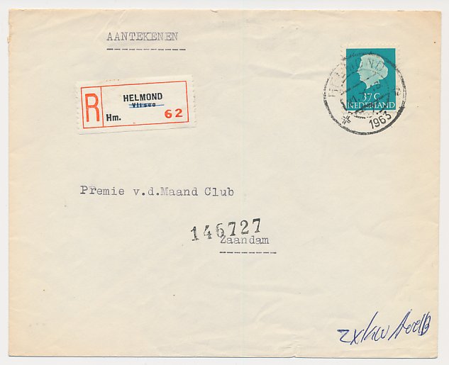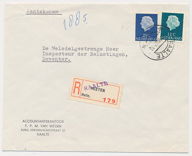 Aangetekend Raalte 1963 - Overstempeld strookje Heeten