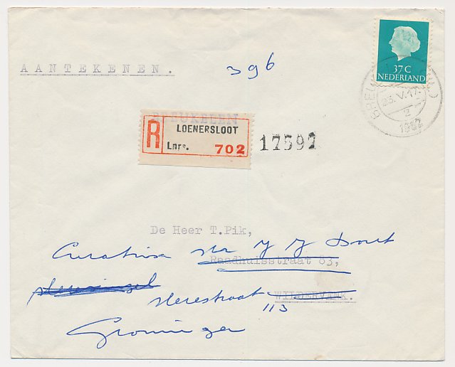 Aangetekend Breukelen 1962 - Overstempeld strookje Loenersloot