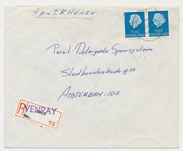 Aangetekend Venray 1969 - Overstempeld strookje Oirlo