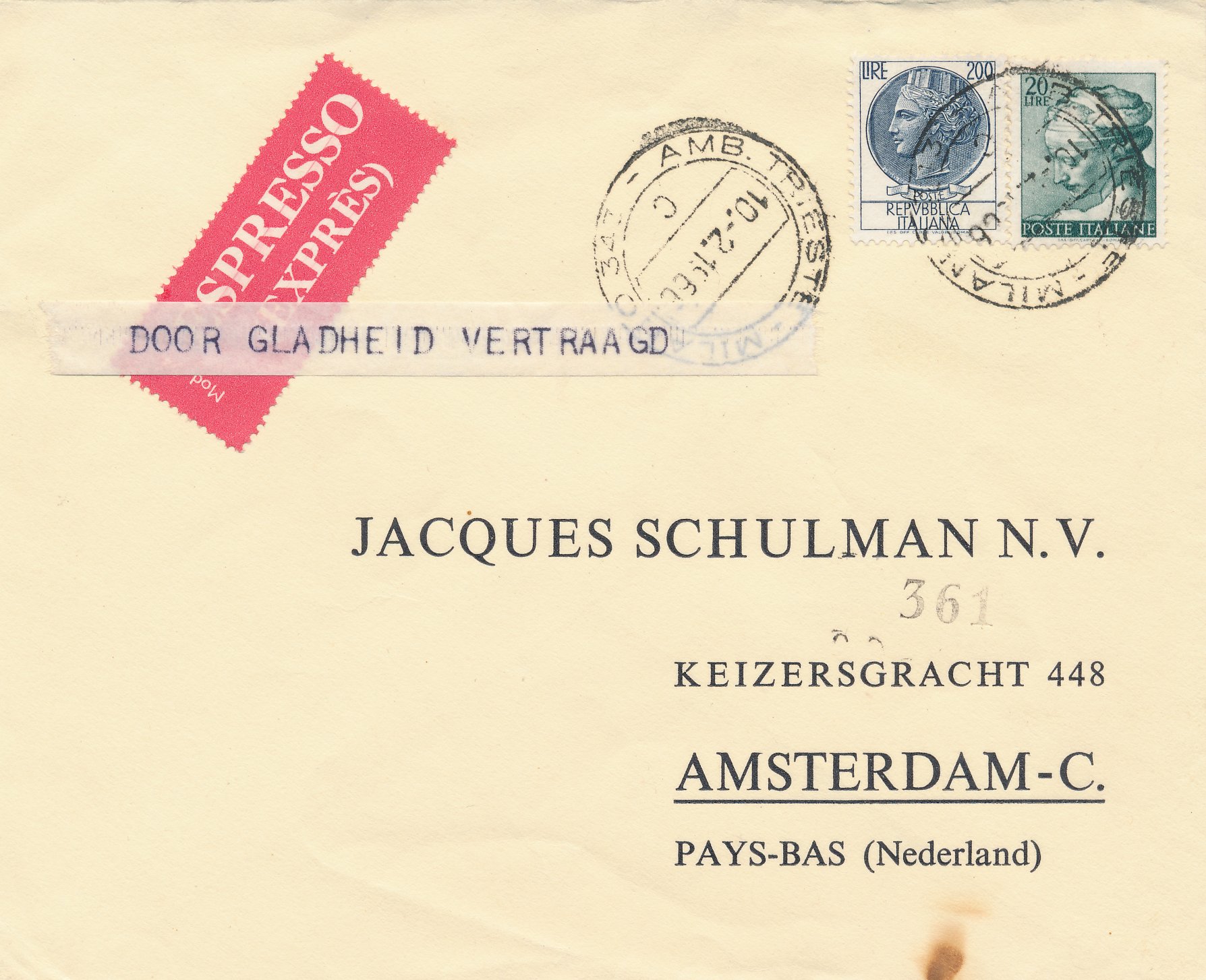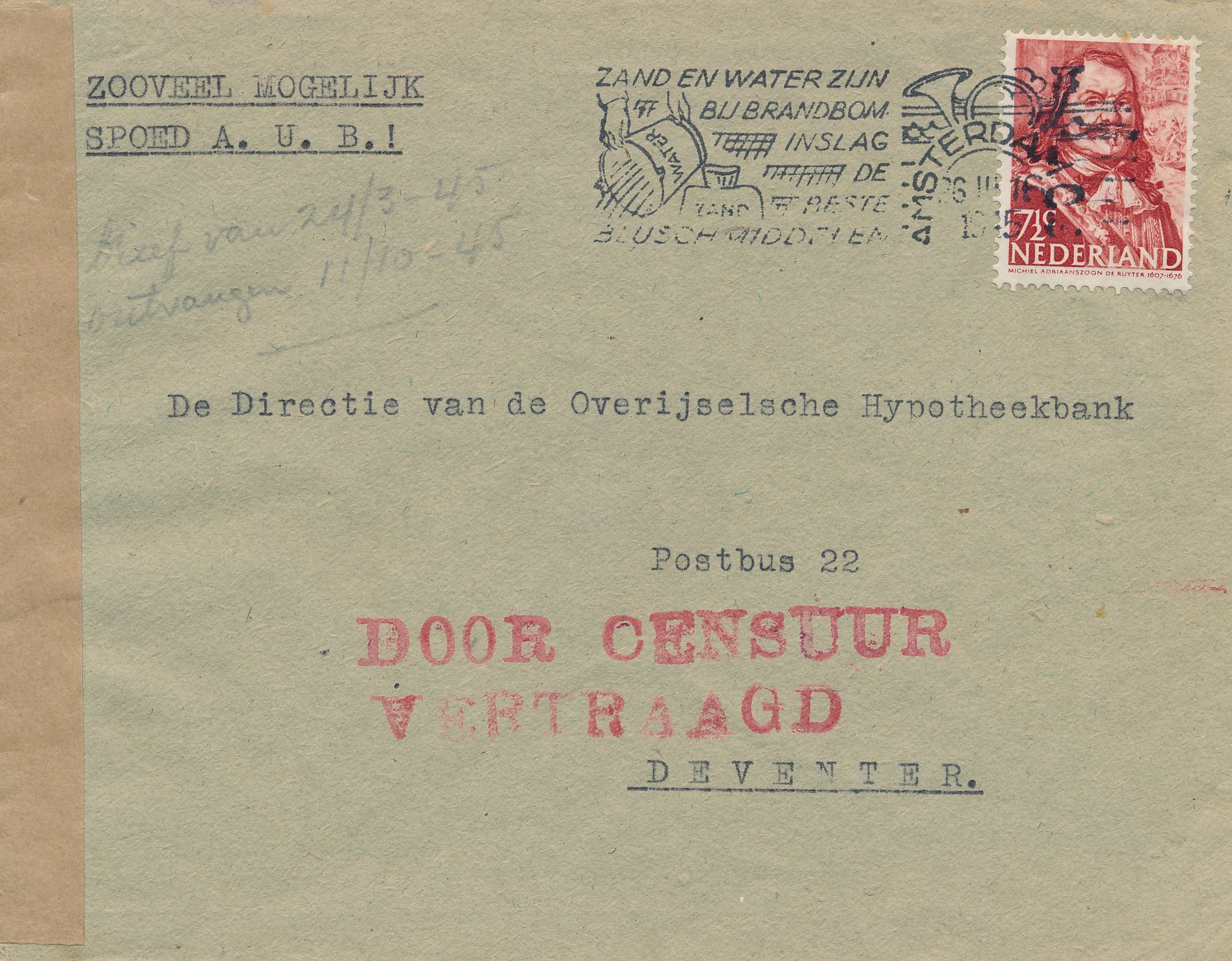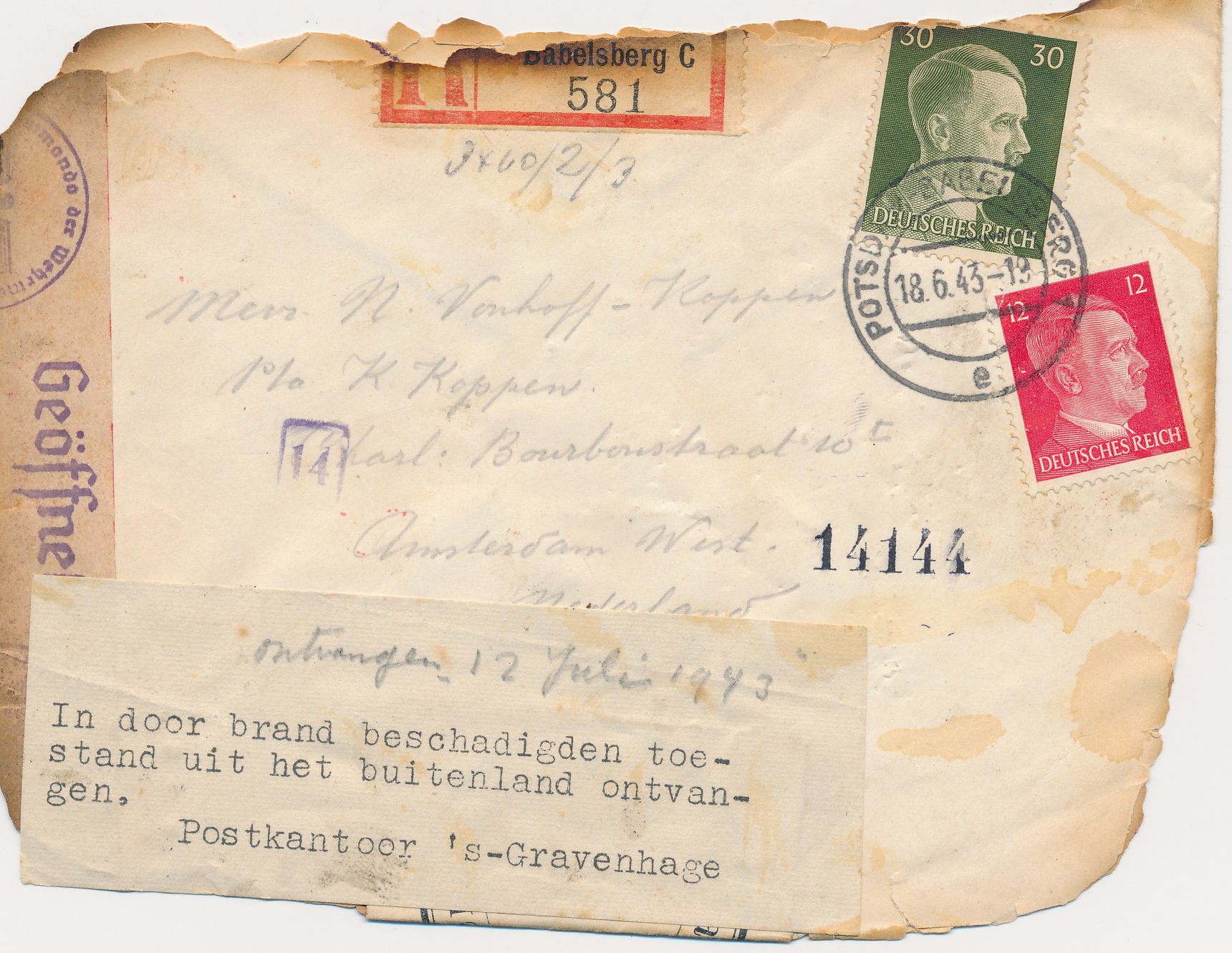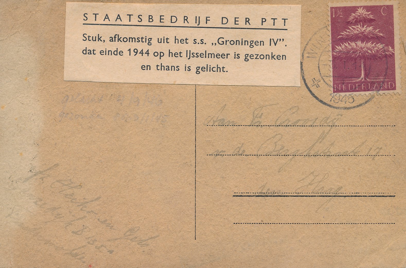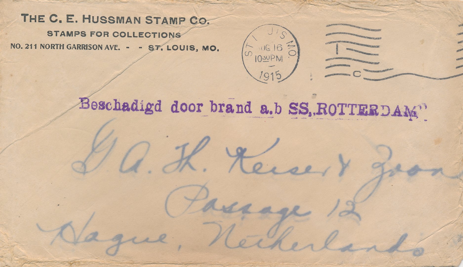 Ramppost / beschadigde post / besmeurde post / vertraagde post / crash mail / wreck mail / disaster mail (enveloppen, briefkaarten, enz.) die betrokken zijn geweest bij een ongeval, brand, kaping, enz. en die daarom voorzien zijn van kenmerken van de Nederlandse PTT / Posterijen, bijvoorbeeld met een stempel, etiket of begeleidende brief.