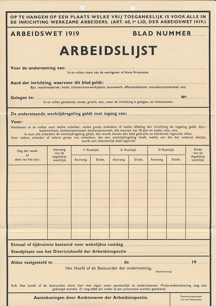 Arbeidslijst G. 31 - Compleet formulier - Ongebruikt - Onbekend